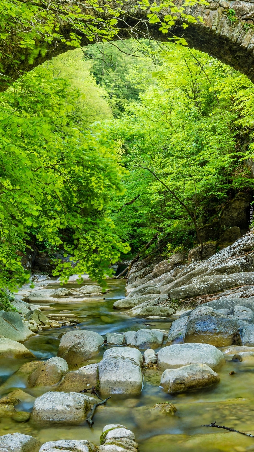 Edytor tapety: Most nad kamienistą rzeką