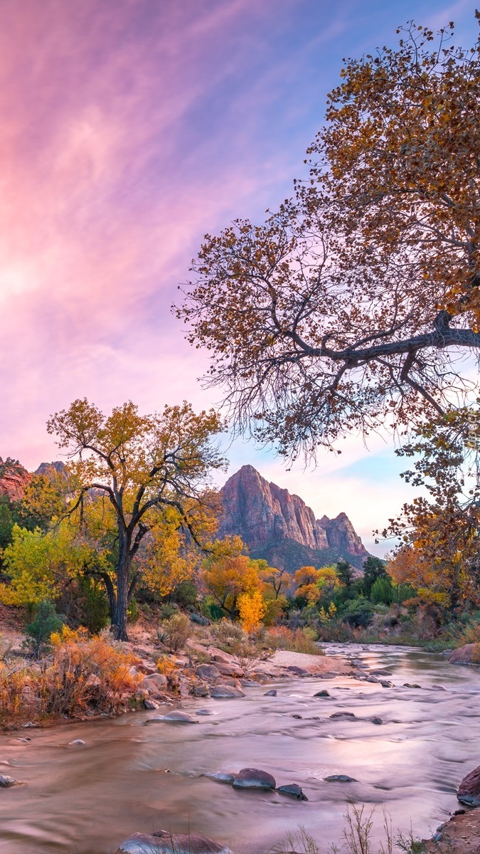 Edytor tapety: Jesienne drzewa nad rzeką Virgin River