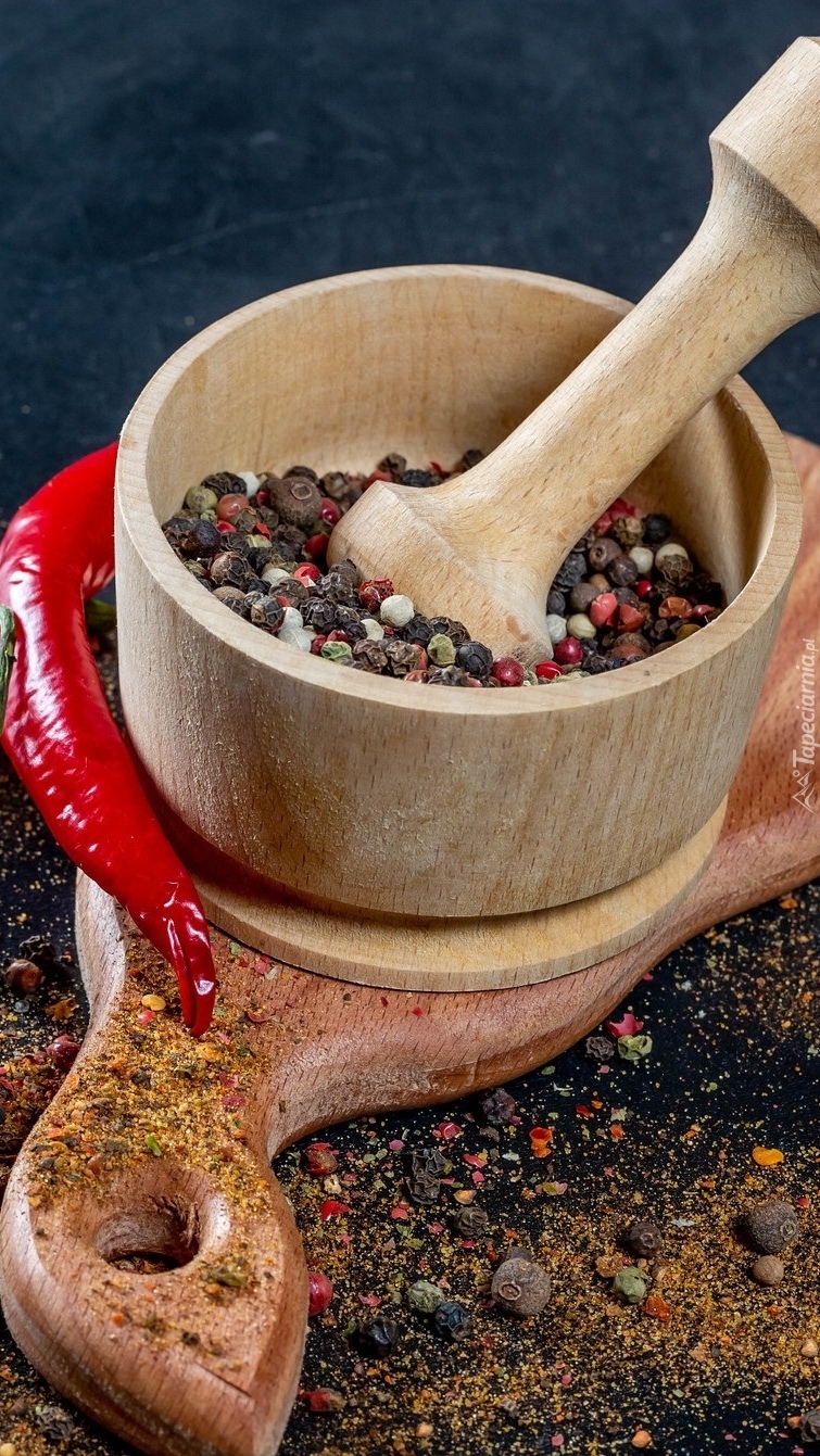 Edytor tapety: Ziarenka pieprzu w moździerzu