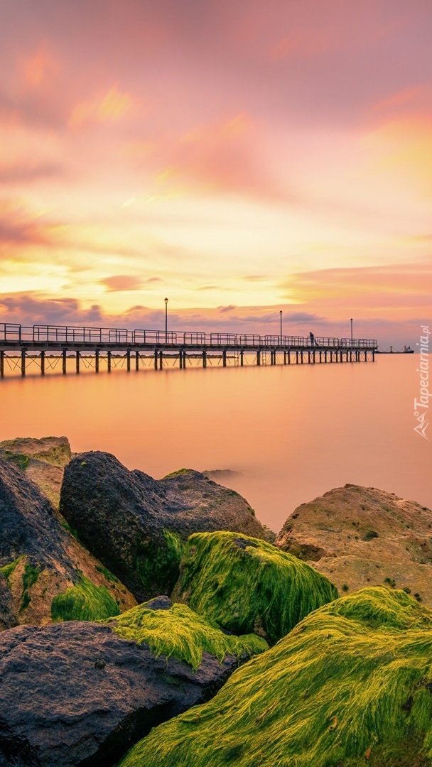 Edytor tapety: Widok z omszonych kamieni na molo