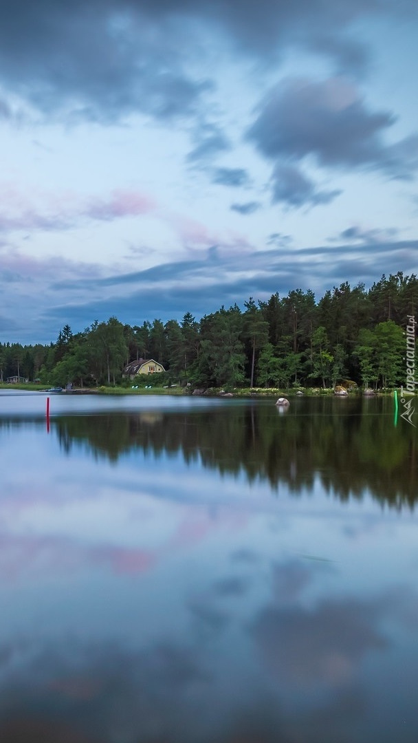 Edytor tapety: Dom pod lasem nad jeziorem