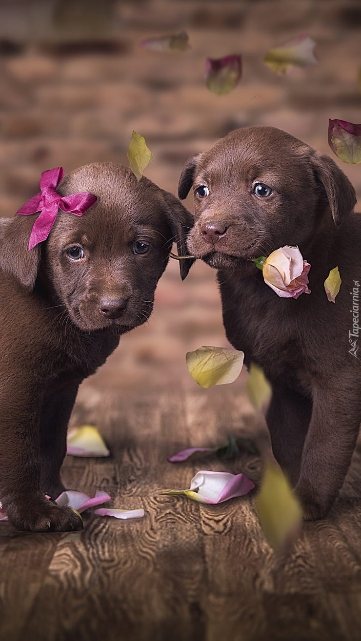 Edytor tapety: Dwa brązowe szczeniaki labradora retriever