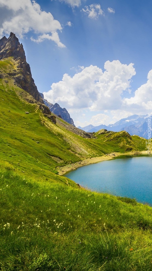 Edytor tapety: Jezioro na górskiej polanie