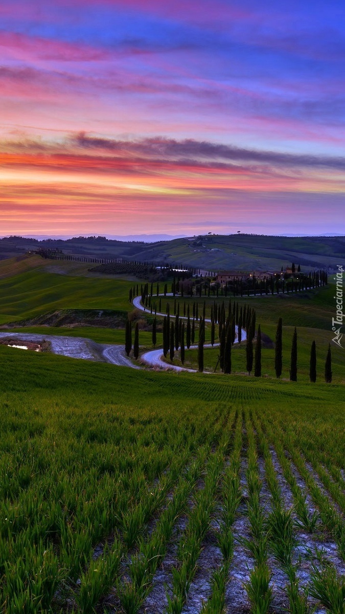 Edytor tapety: Cyprysy przy drodze na wzgórzach Toskanii