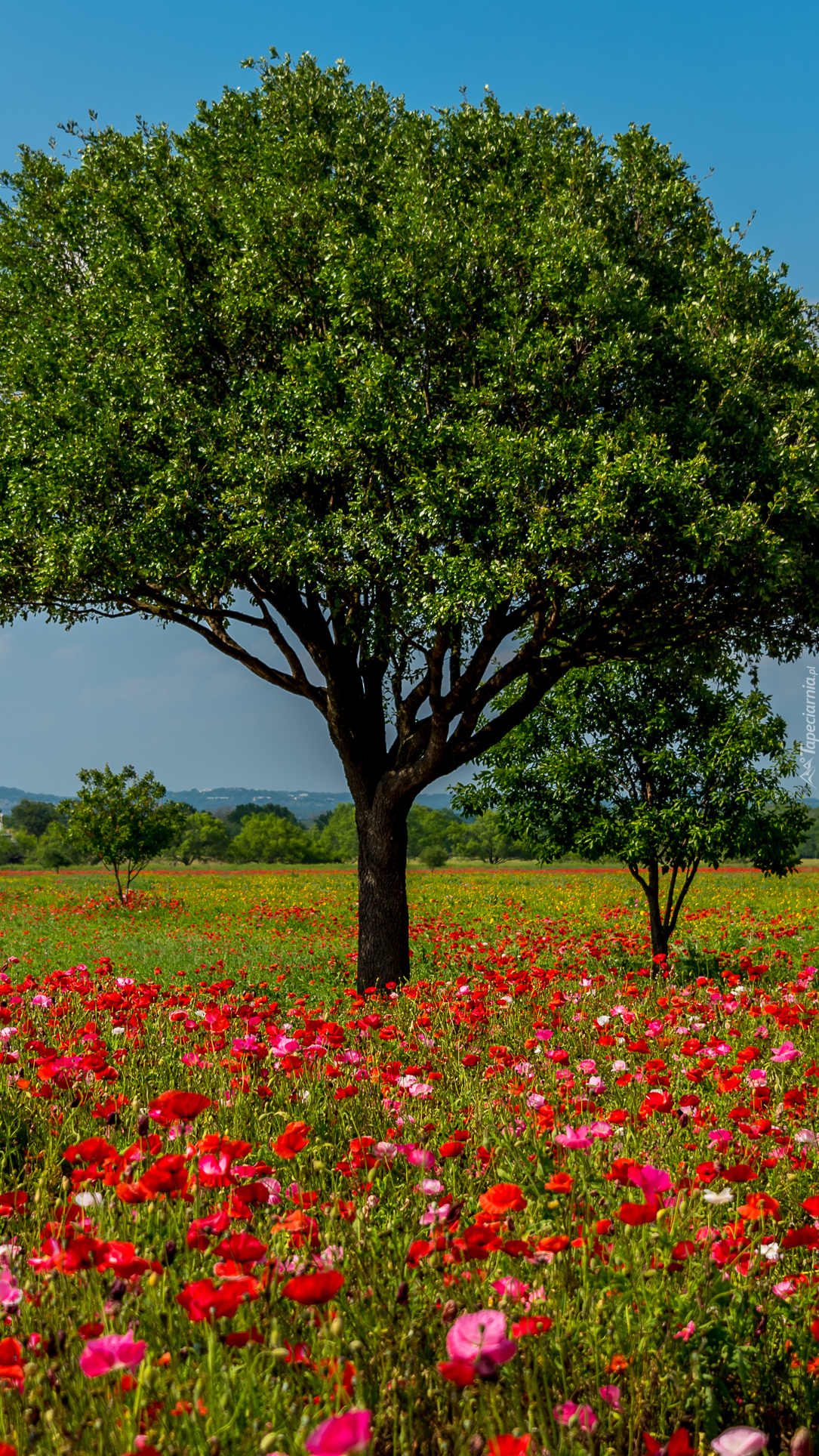 Edytor tapety: Maki pod drzewami na łące