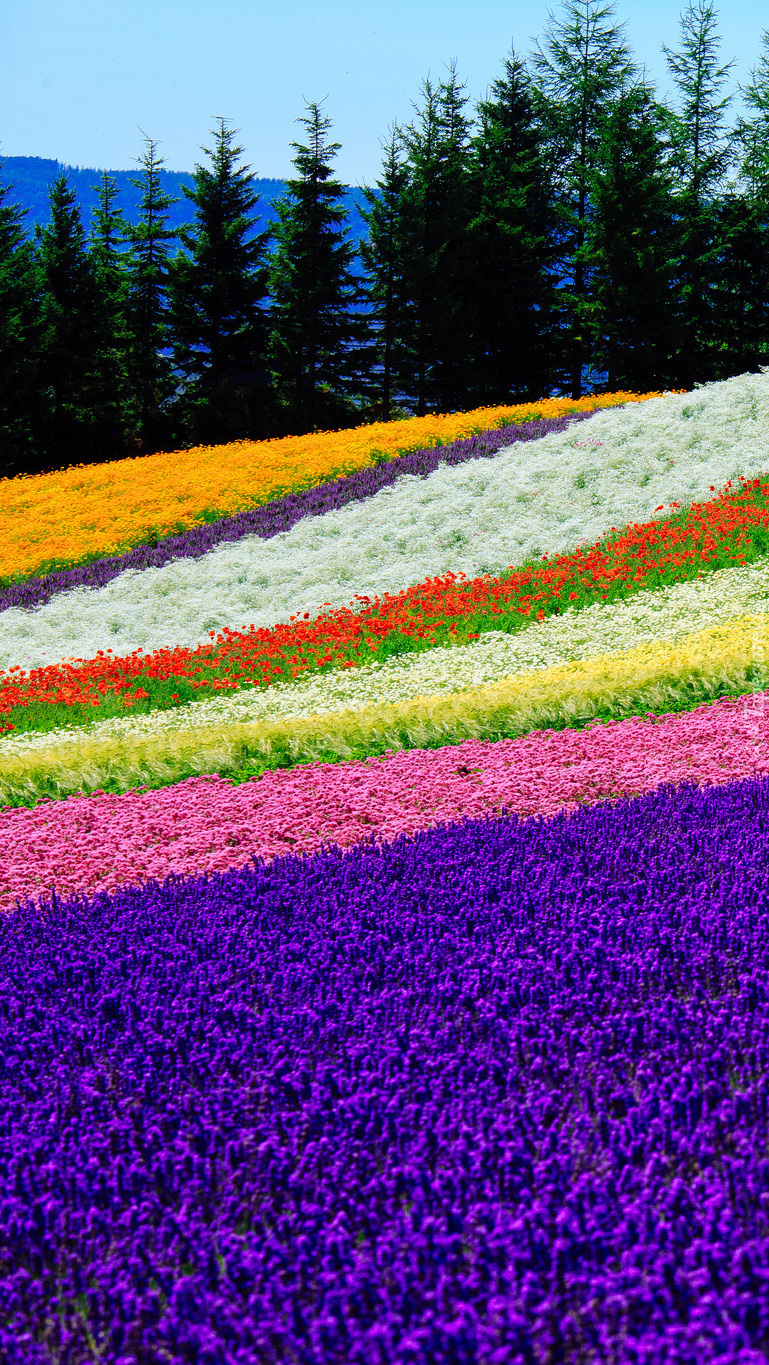 Edytor tapety: Plantacja kwiatów Tomita Farm w Japonii