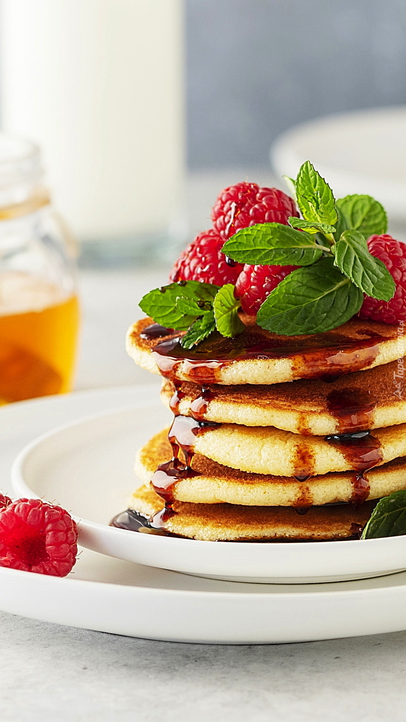 Edytor tapety: Naleśniki z malinami i miętą