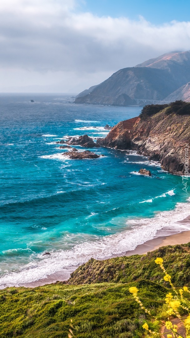 Edytor tapety: Plaża na skalistym wybrzeżu