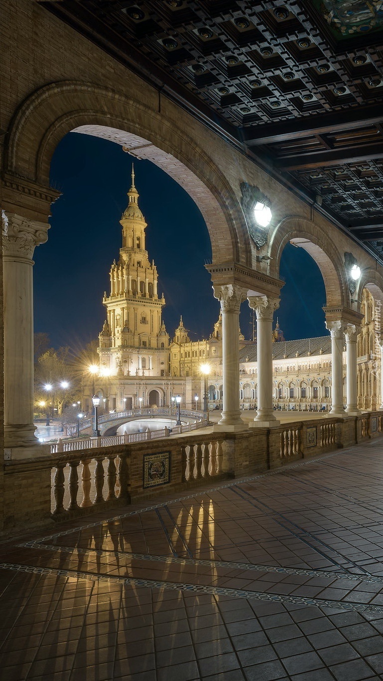 Edytor tapety: Oświetlony Plac Hiszpański w Sewilli
