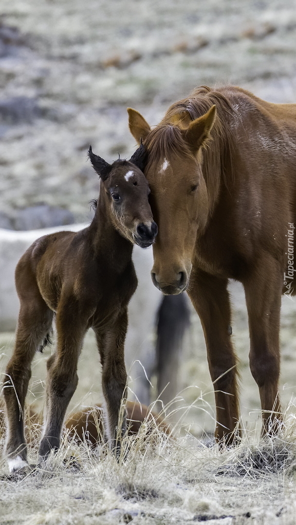 Edytor tapety: Źrebak przytulony do klaczy