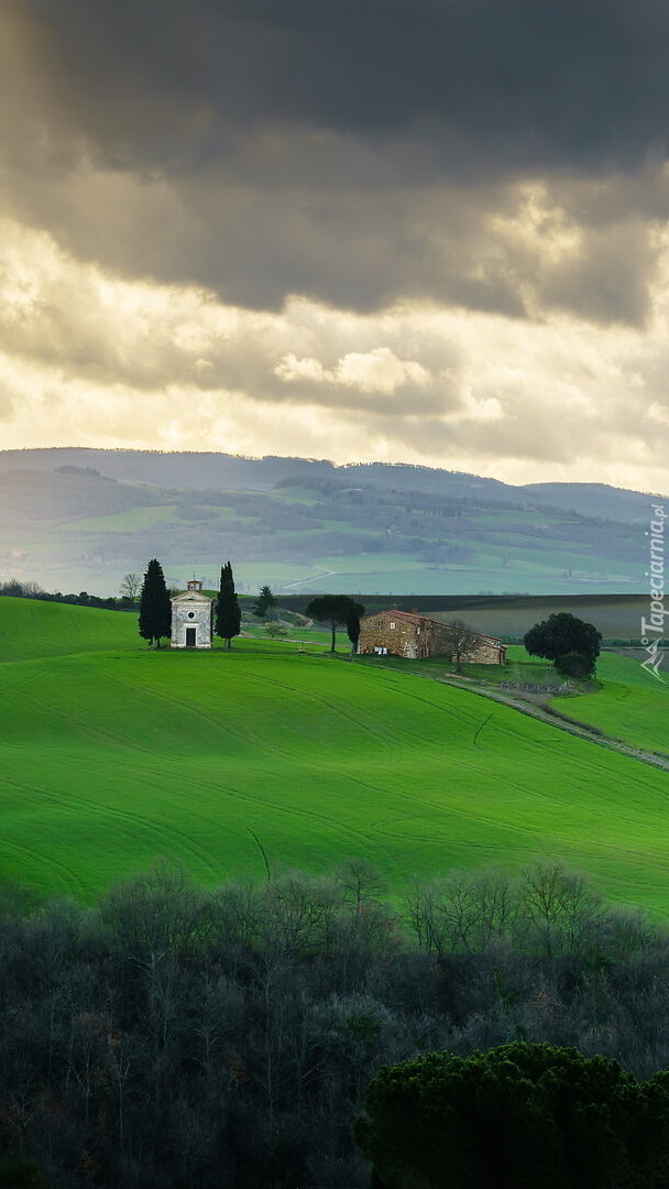 Edytor tapety: Domy na zielonych wzgórzach Toskanii