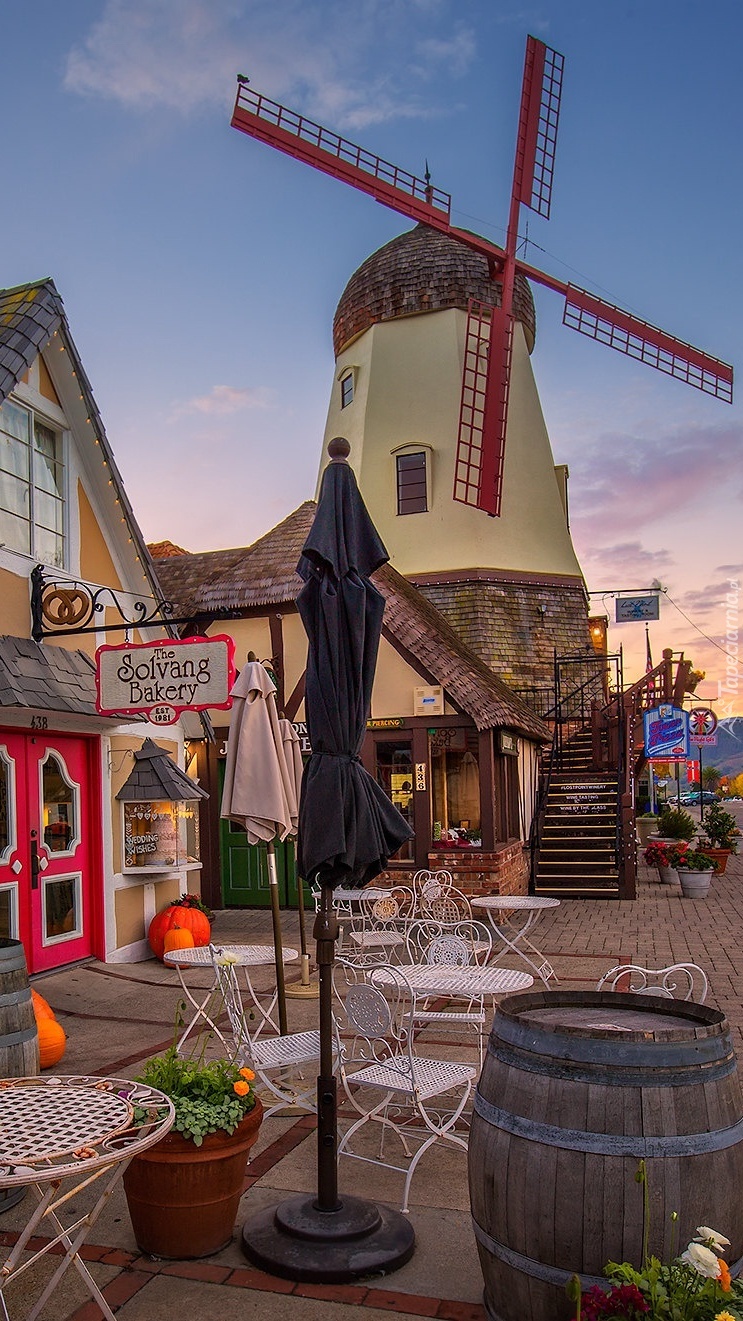 Edytor tapety: Wiatrak na uliczce w Solvang