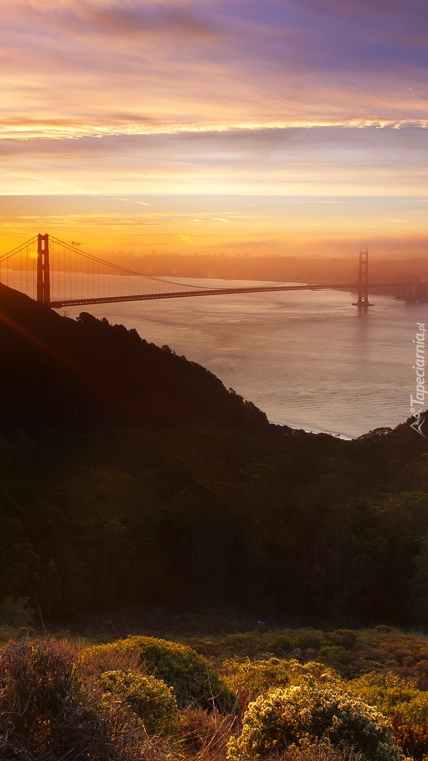 Edytor tapety: Wschód słońca nad cieśniną Golden Gate