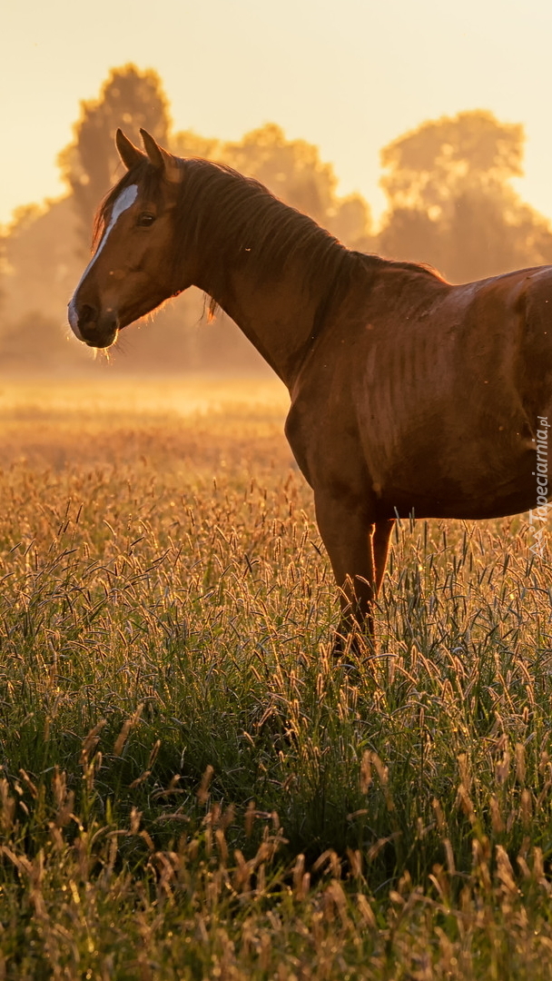 Edytor tapety: Brązowy koń na łące