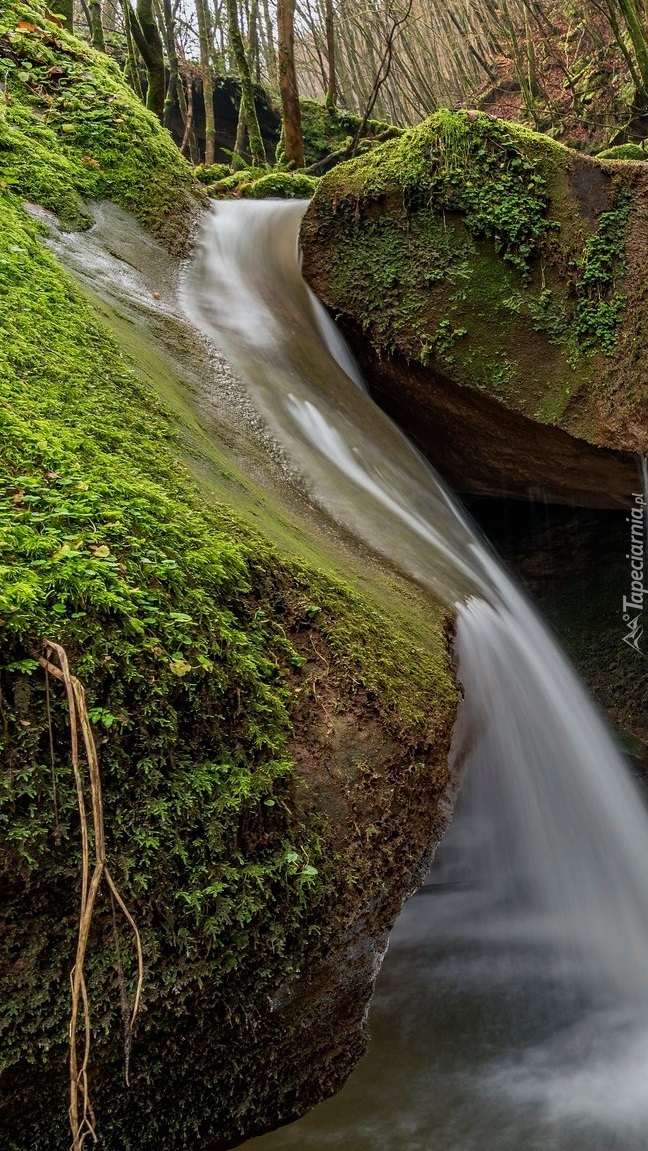 Edytor tapety: Wodospad na omszałych skałach