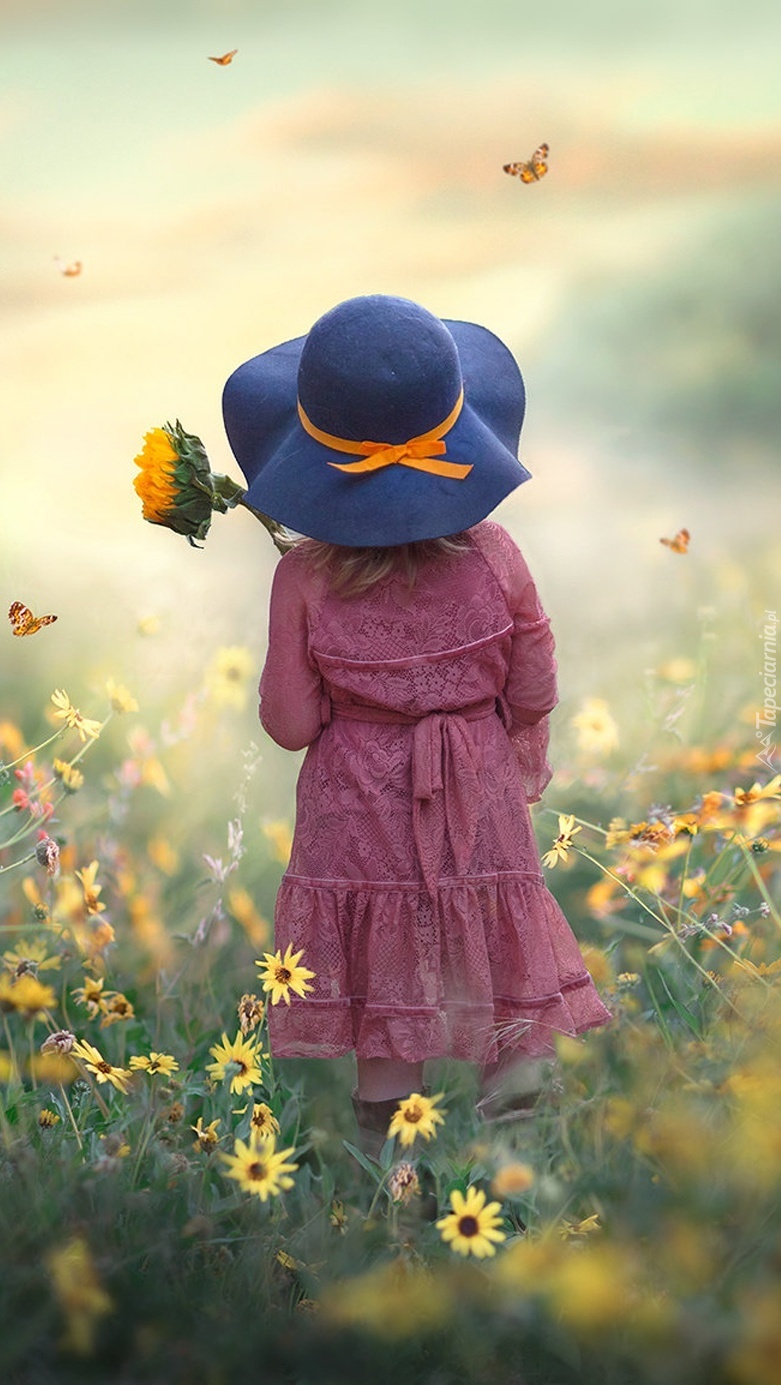 Edytor tapety: Dziewczynka w kapeluszu na łące