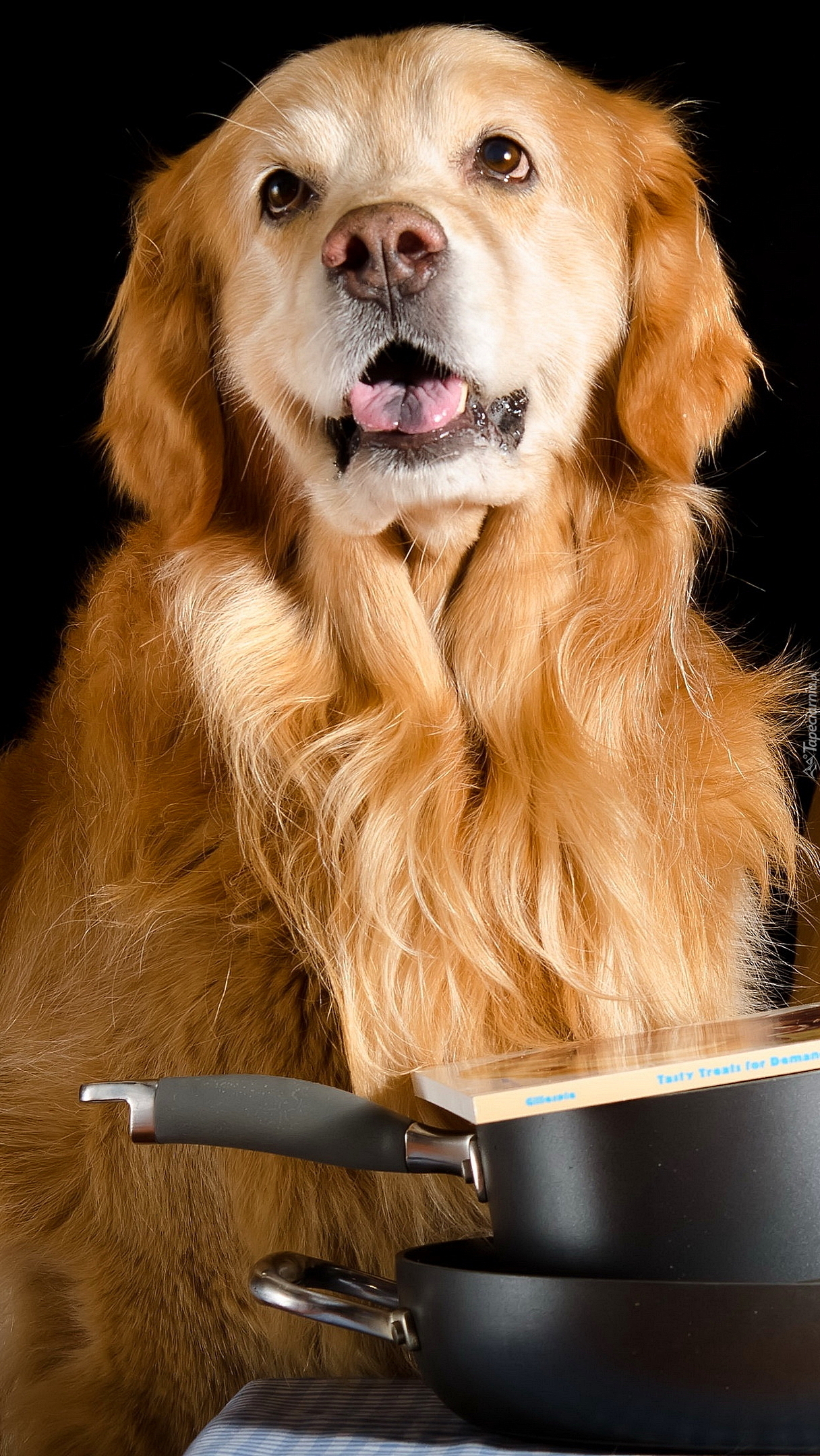 Edytor tapety: Golden retriever przy patelniach