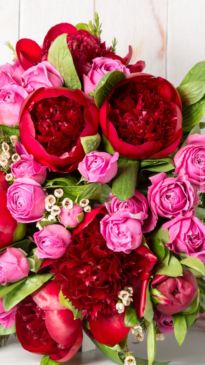 Edytor tapety: Czerwone piwonie i różowe różne