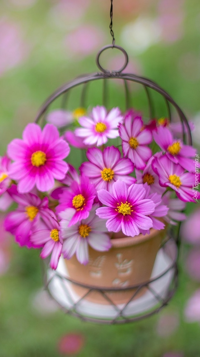 Edytor tapety: Wisząca doniczka z kosmeą