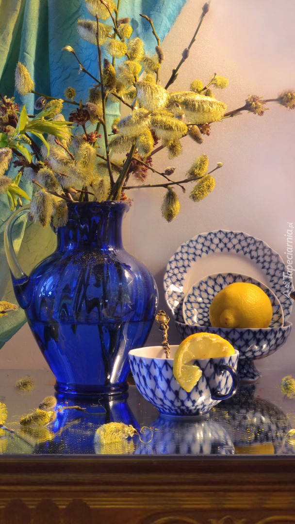 Edytor tapety: Kwitnące bazie w wazonie