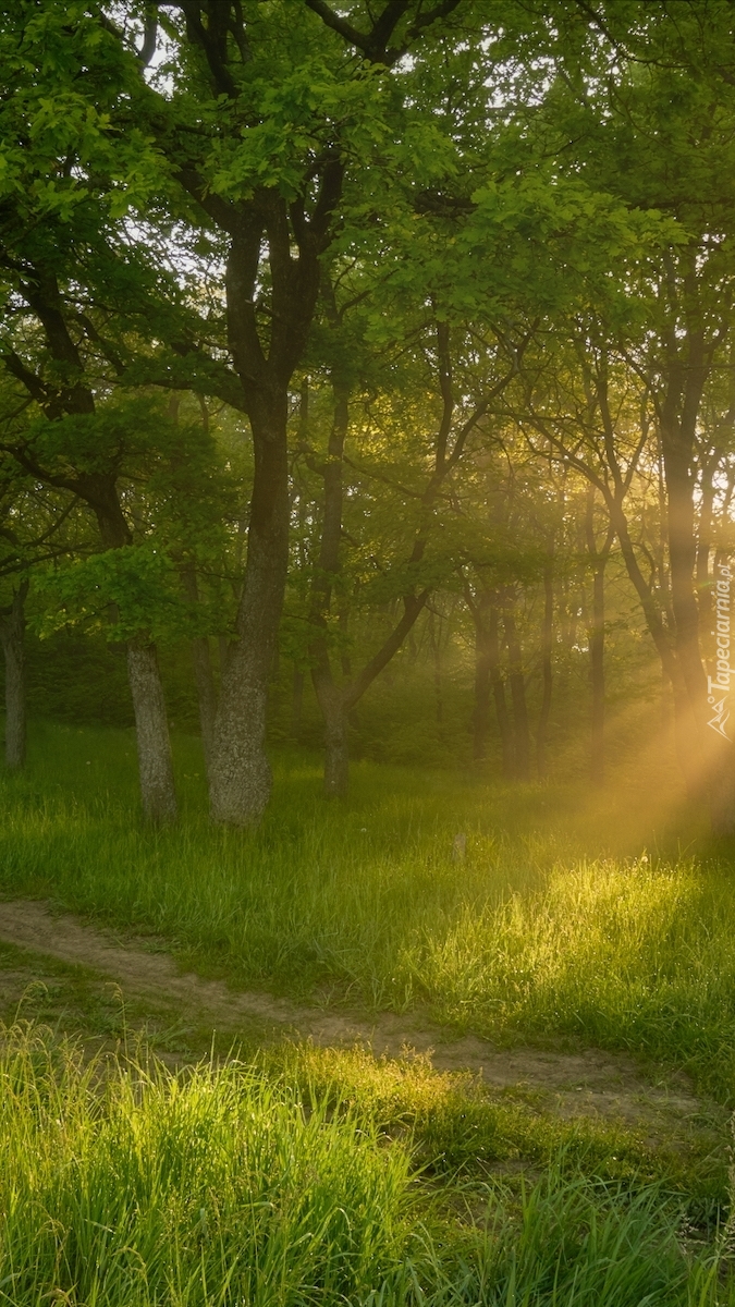 Edytor tapety: Słoneczne promienie na leśnej ścieżce