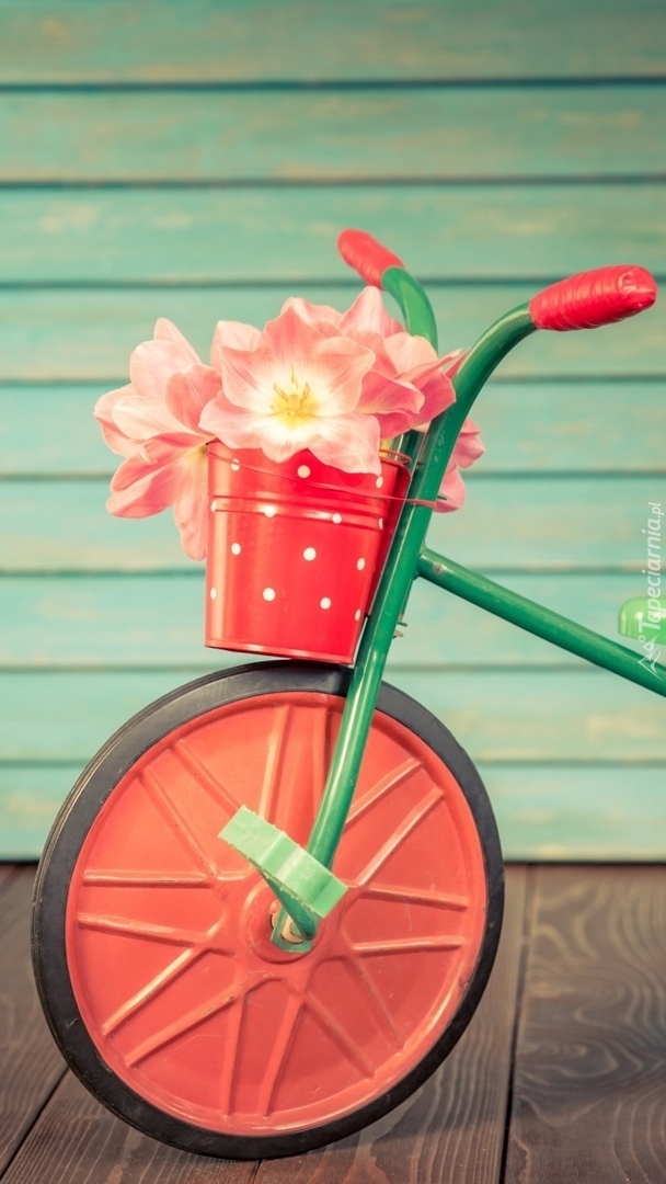 Edytor tapety: Rowerek z wiaderkiem tulipanów