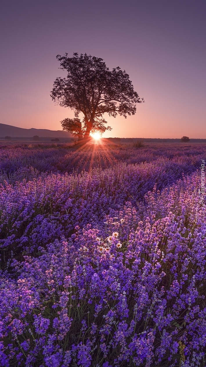 Edytor tapety: Drzewo na polu lawendy