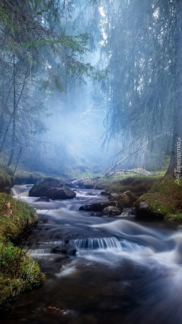 Edytor tapety: Kamienista rzeka w lesie