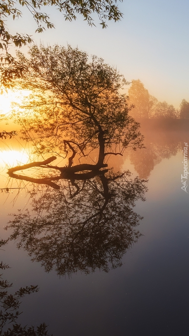Edytor tapety: Pochyłe drzewo w jeziorze