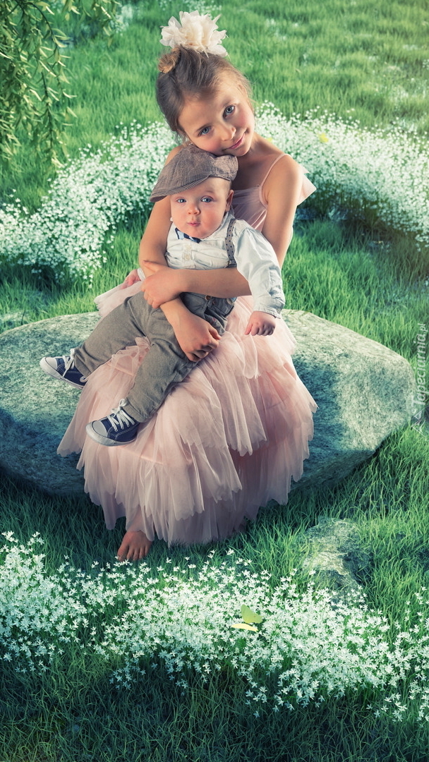 Edytor tapety: Dzieci siedzące na kamieniu