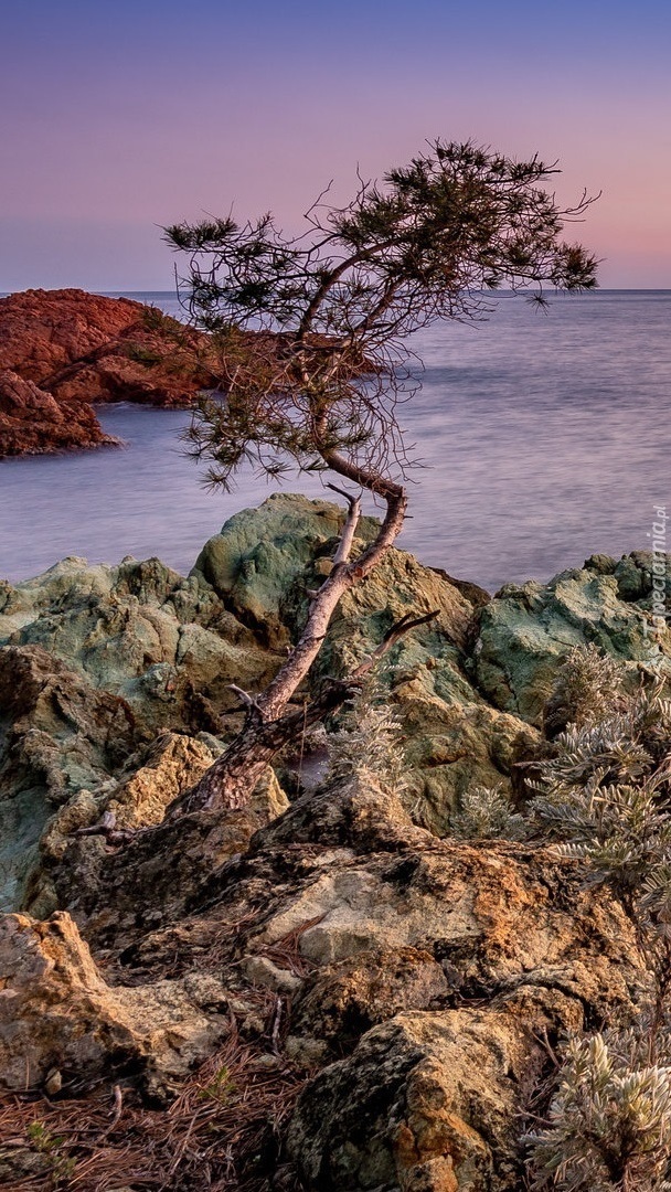 Edytor tapety: Drzewo na skałach nad morzem