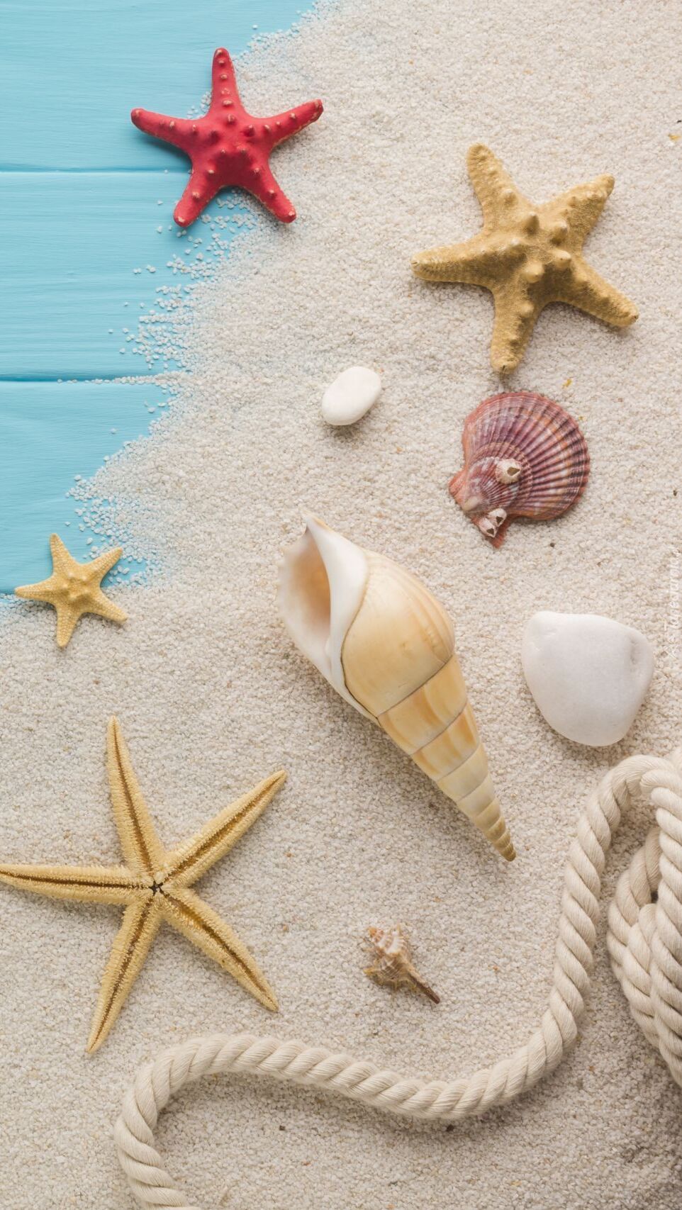 Edytor tapety: Muszelki i rogwiazdy na piasku
