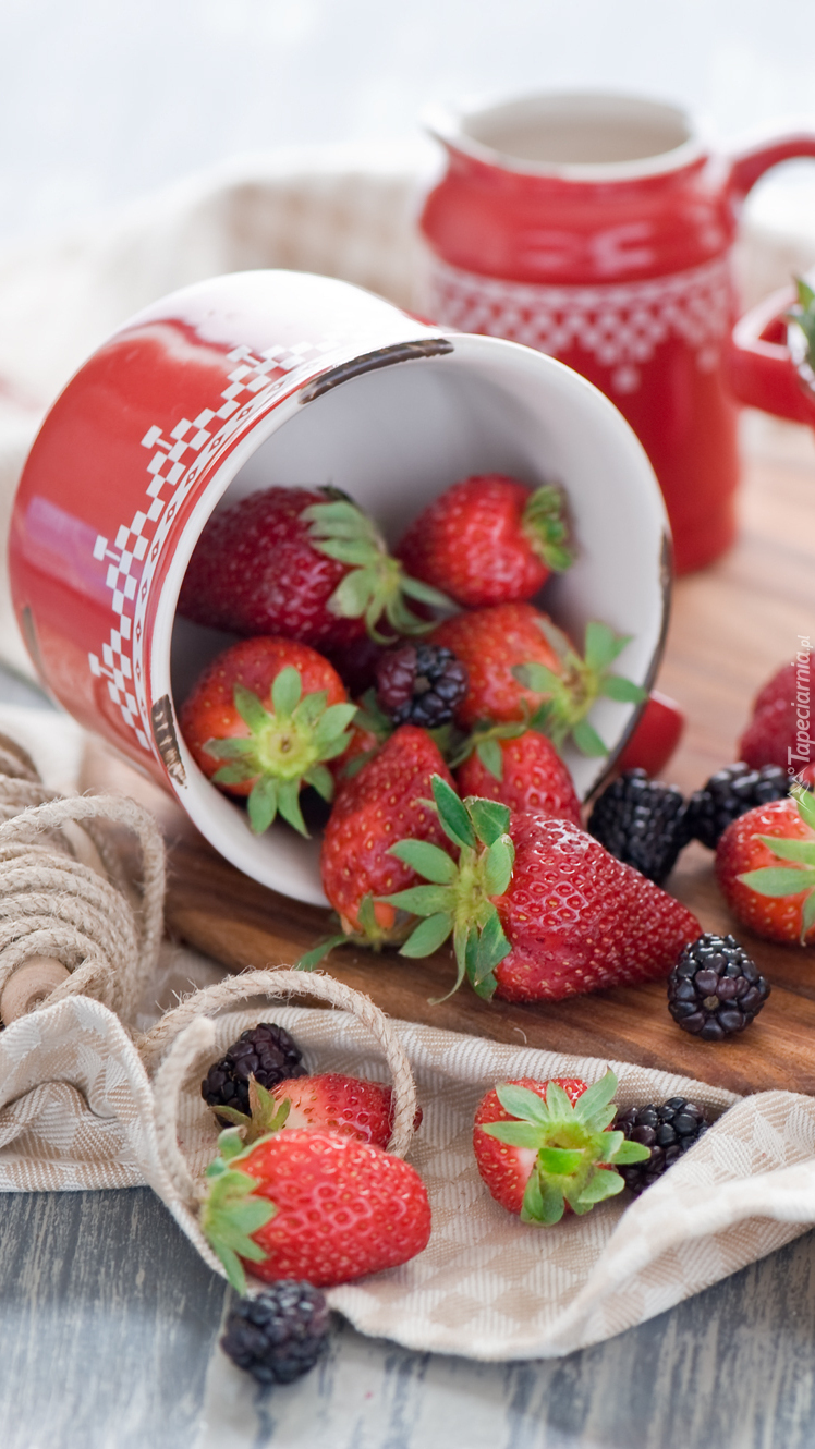 Edytor tapety: Truskawki w przewróconym garnuszku