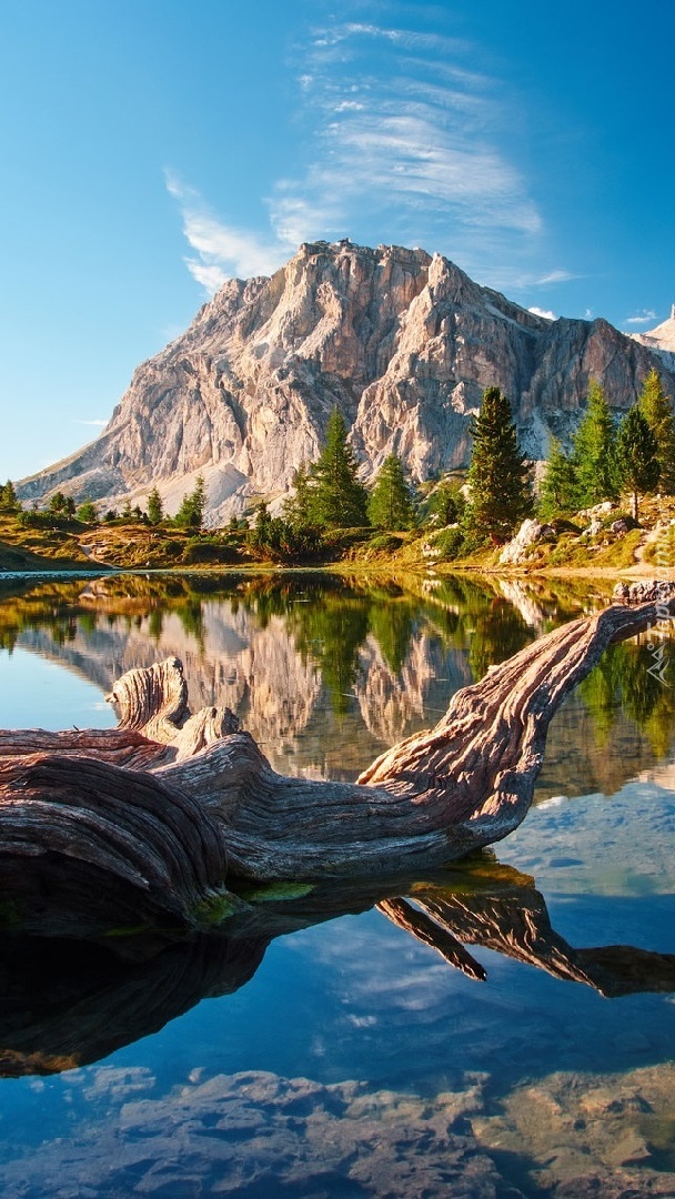 Edytor tapety: Jezioro Lago Limides na tle Dolomitów
