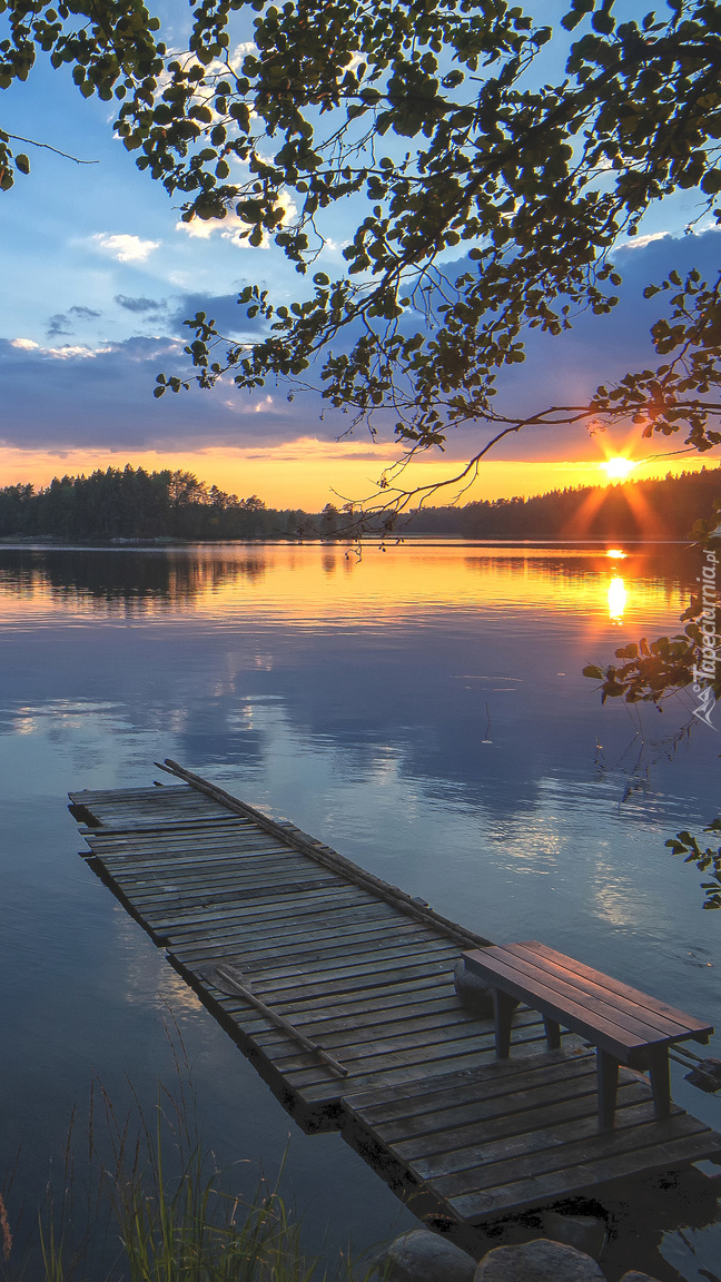 Edytor tapety: Pomost z ławką nad jeziorem