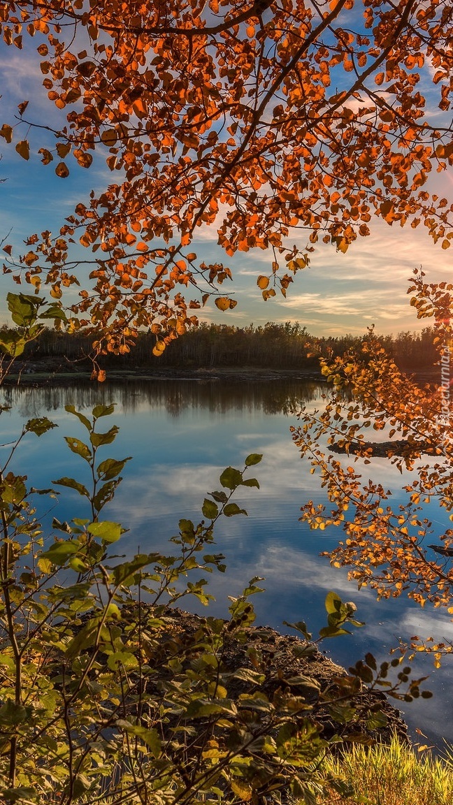 Edytor tapety: Zwisające gałęzie nad jeziorem