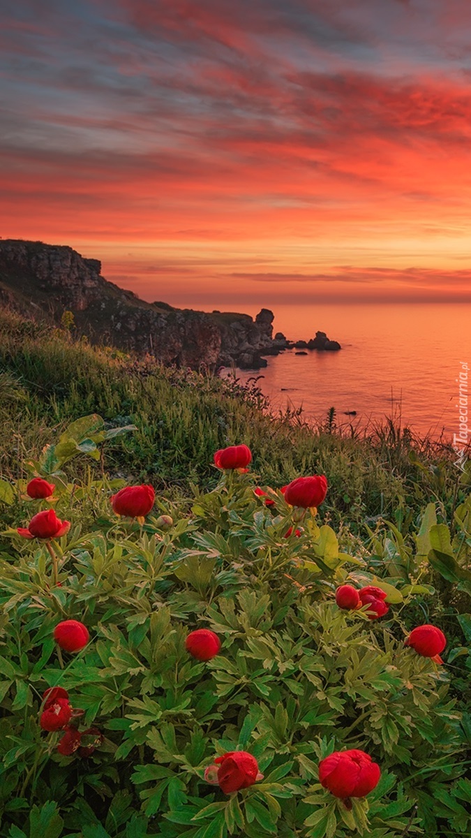 Edytor tapety: Piwonie i Morze Czarne w tle