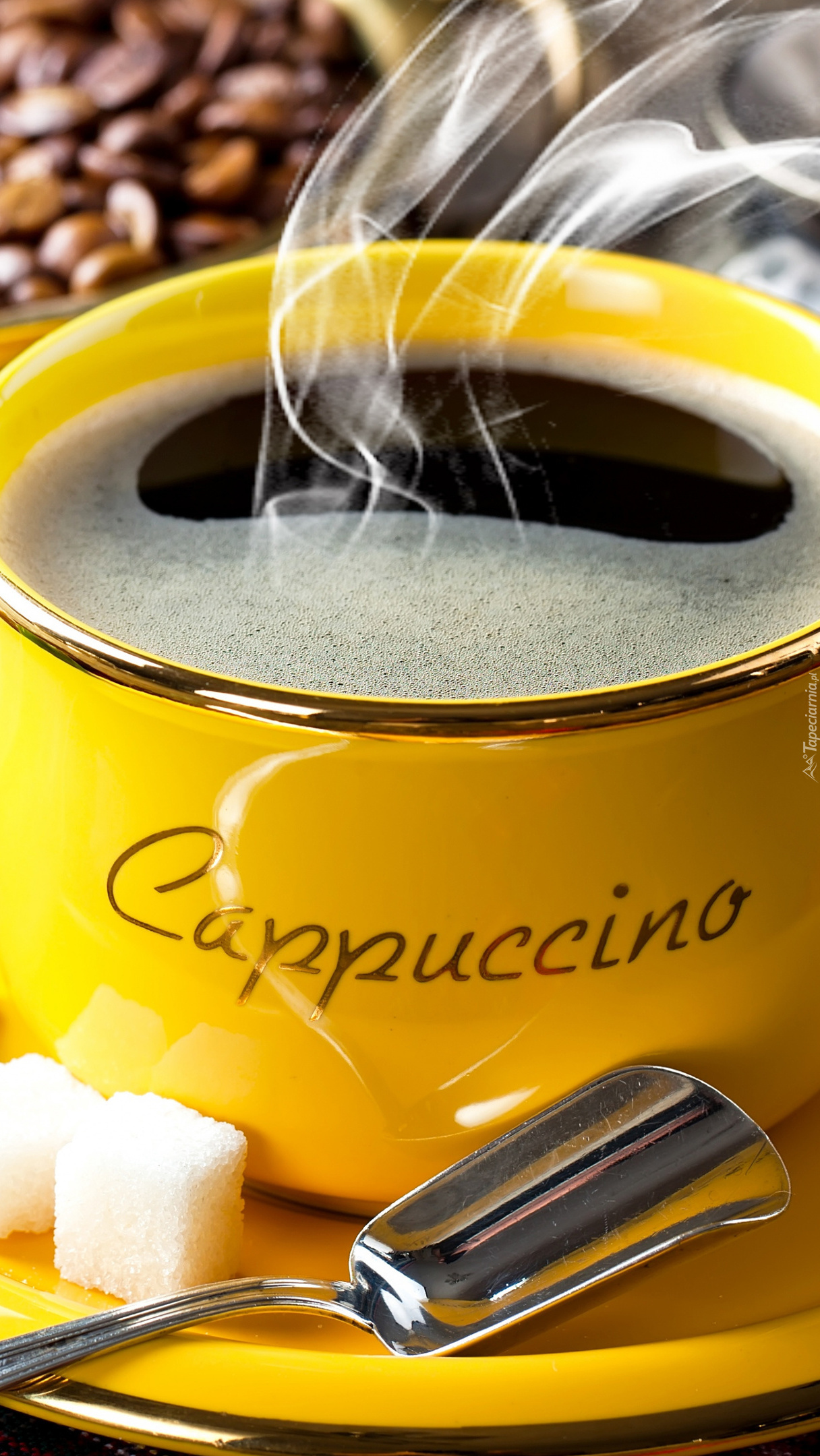 Edytor tapety: Kawa w żółtej filiżance