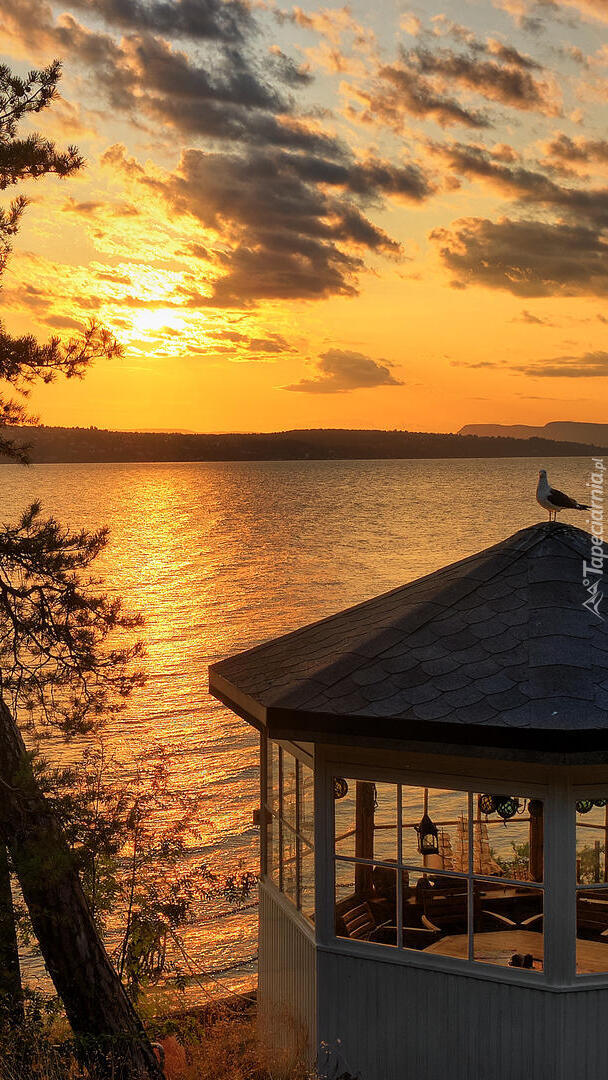 Edytor tapety: Altana obok drzewa nad jeziorem