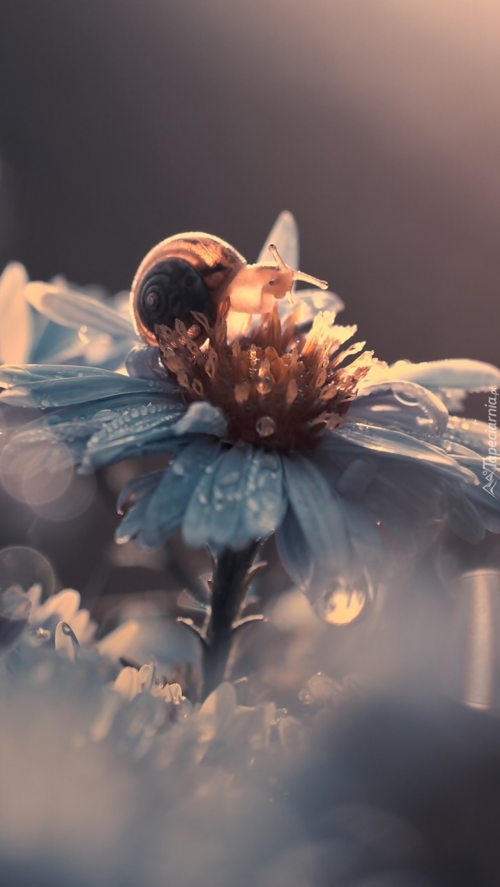 Edytor tapety: Ślimak na zroszonym kwiatku