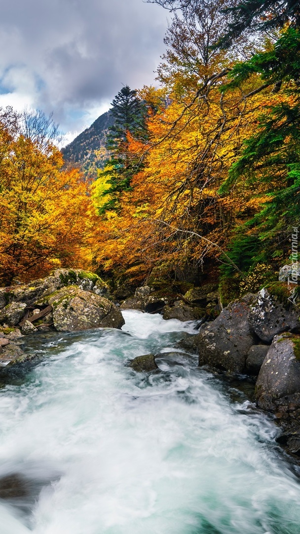 Edytor tapety: Jesienne drzewa nad rwącą rzeką