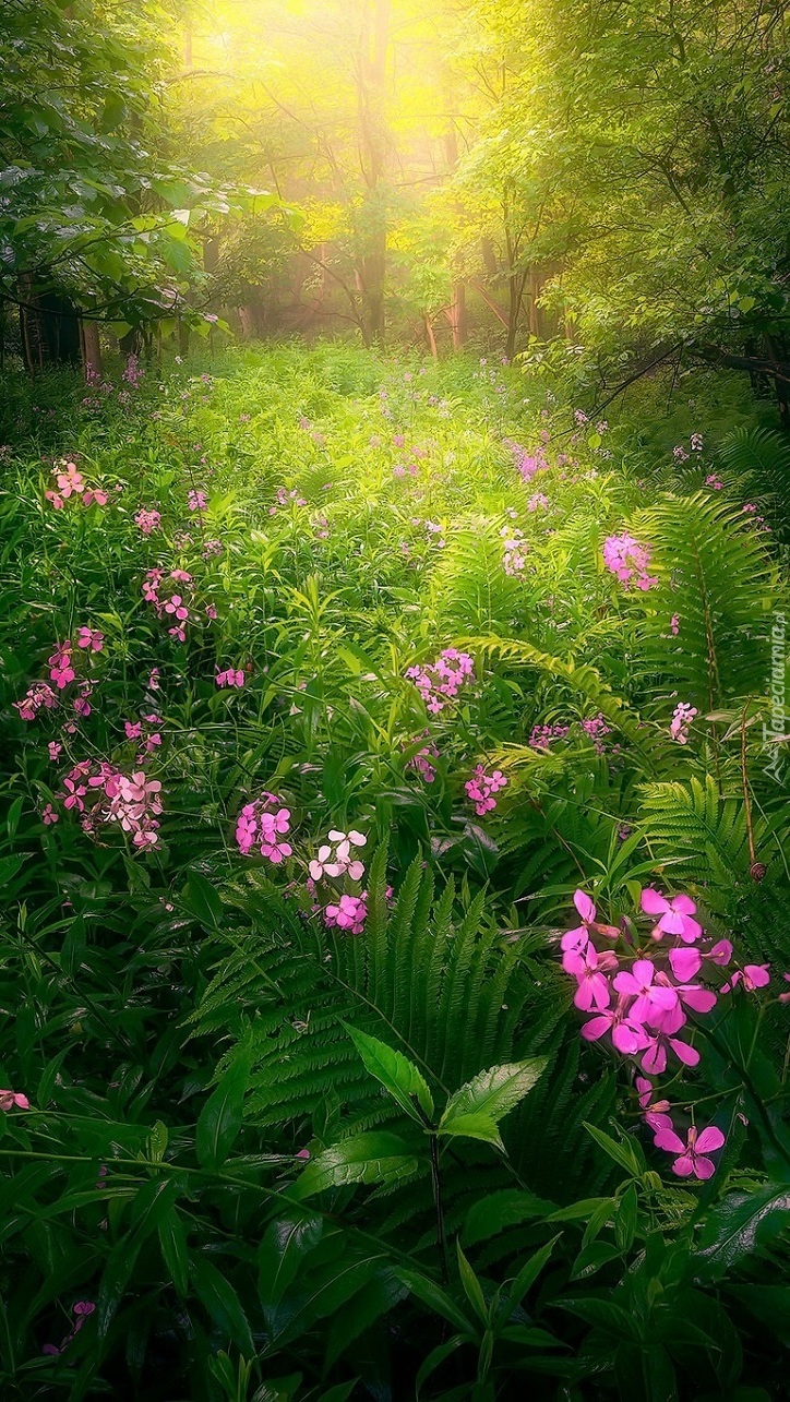 Edytor tapety: Kwiaty i paprocie w słońcu
