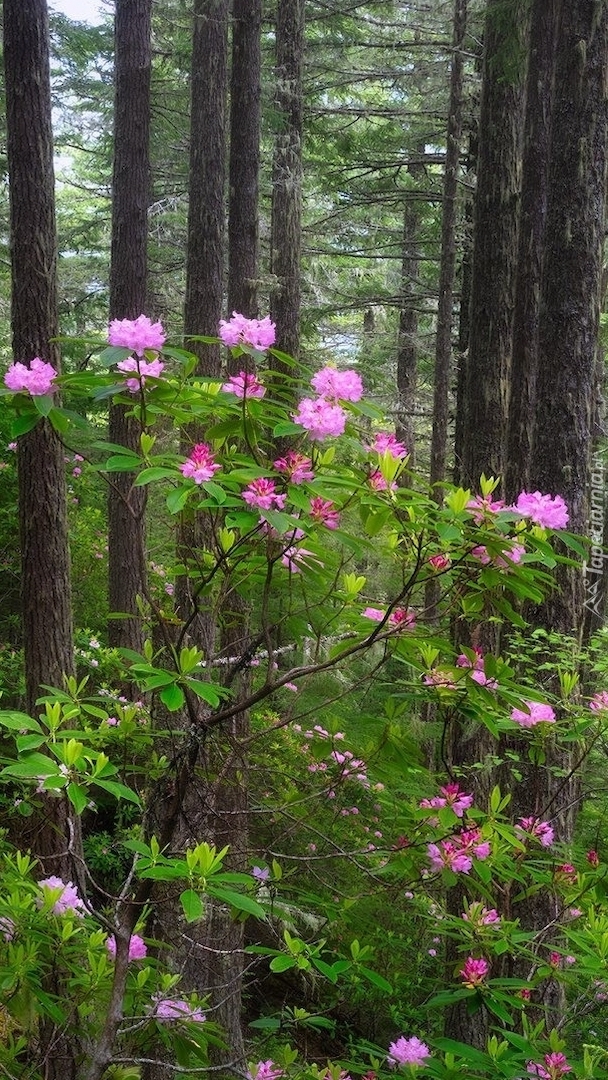 Edytor tapety: Rododendrony przy drzewach