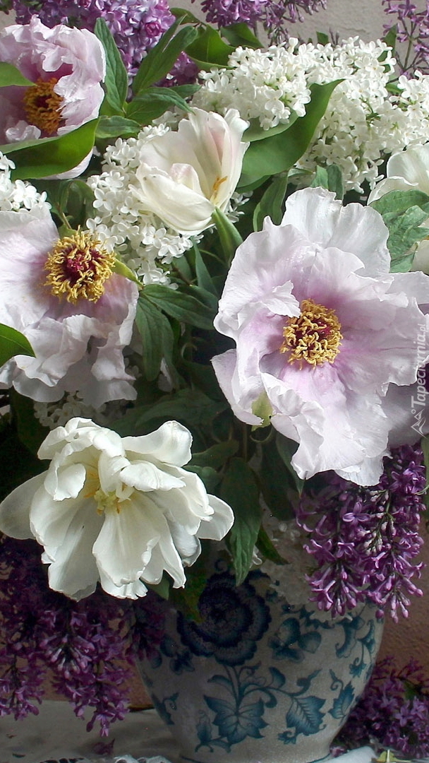 Edytor tapety: Bukiet z bzu i piwonii