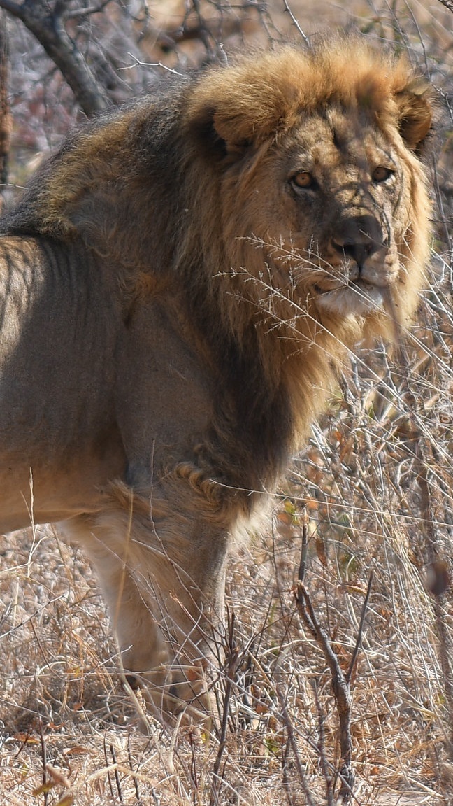 Edytor tapety: Lew w suchej trawie