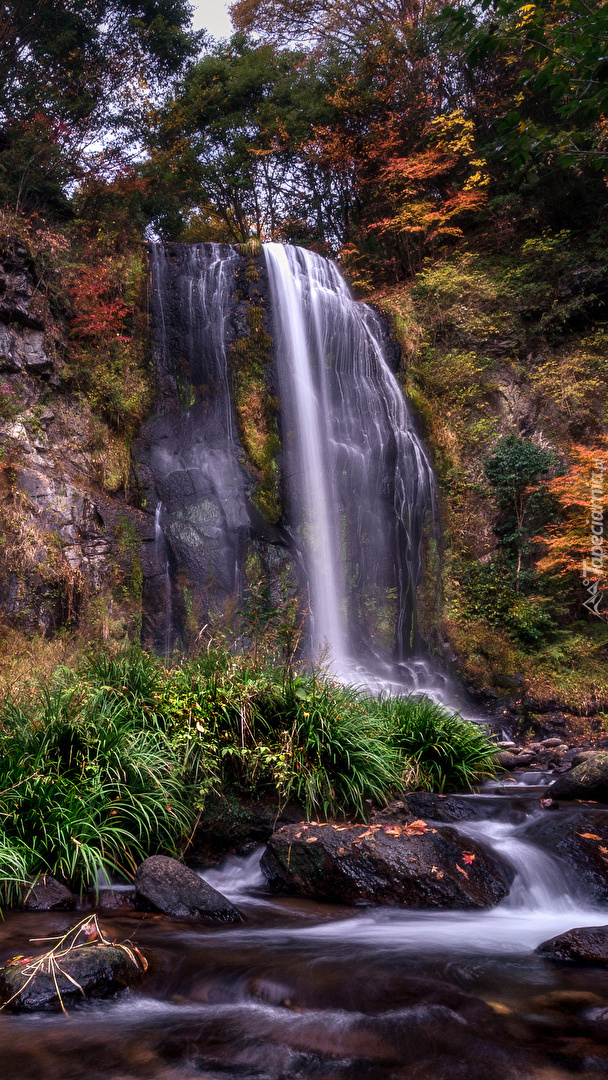 Edytor tapety: Wodospad wśród jesiennych drzew