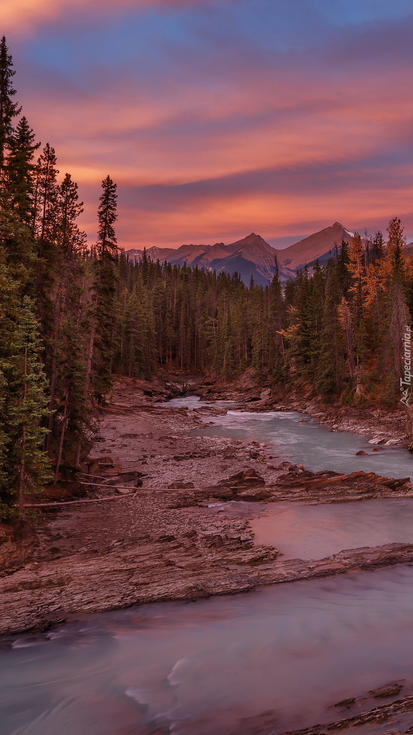 Edytor tapety: Drzewa nad rzeką Kicking Horse