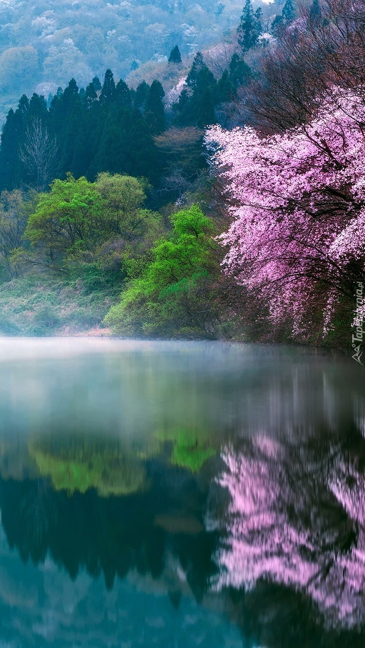 Edytor tapety: Wiosenny poranek nad jeziorem