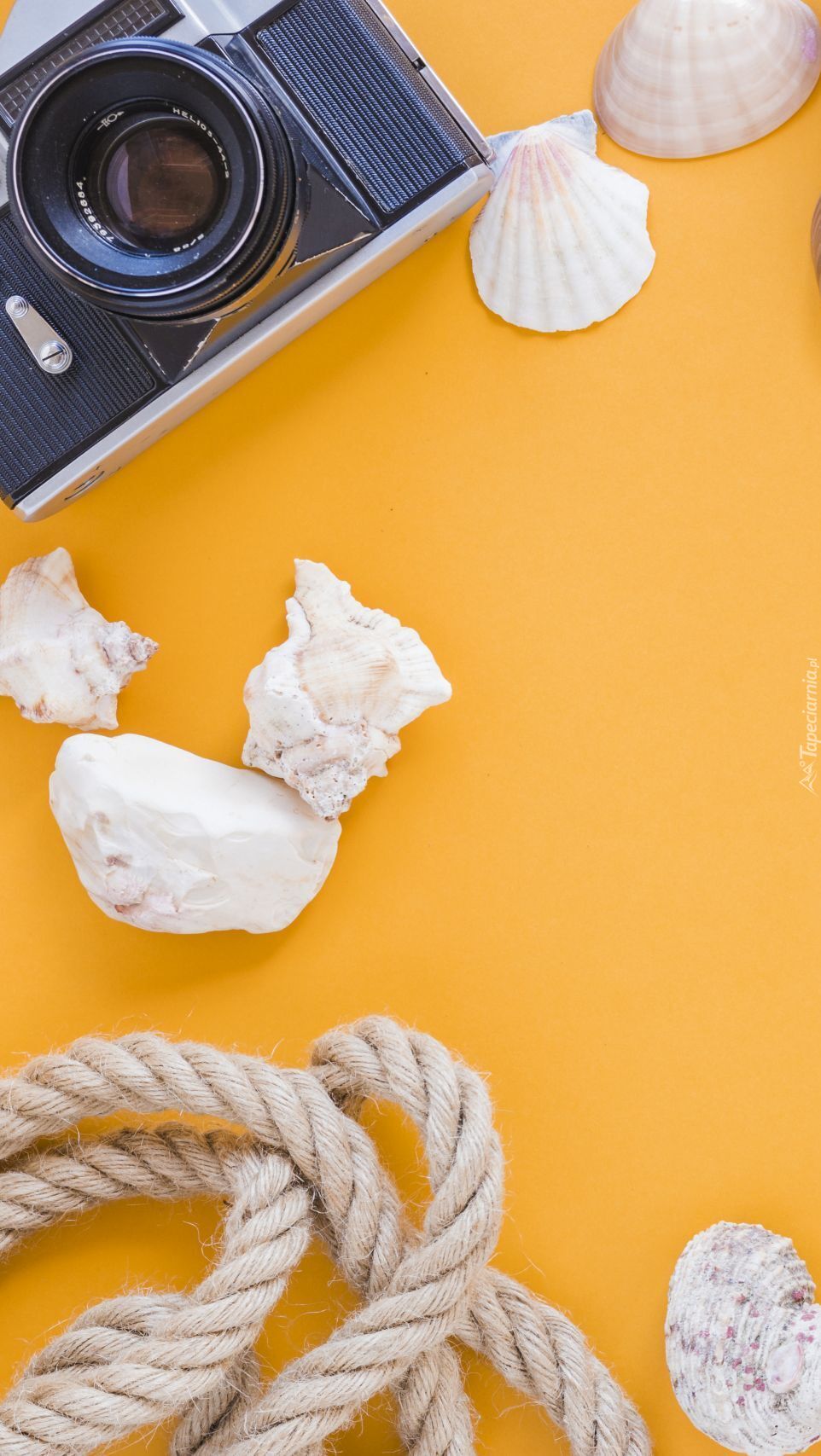 Edytor tapety: Muszelki przy aparacie fotograficznym