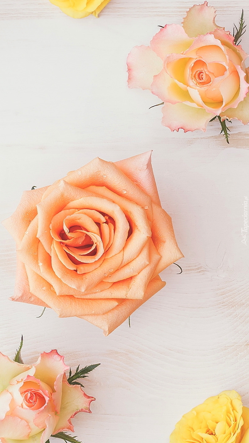 Edytor tapety: Kolorowe róże na drewnie